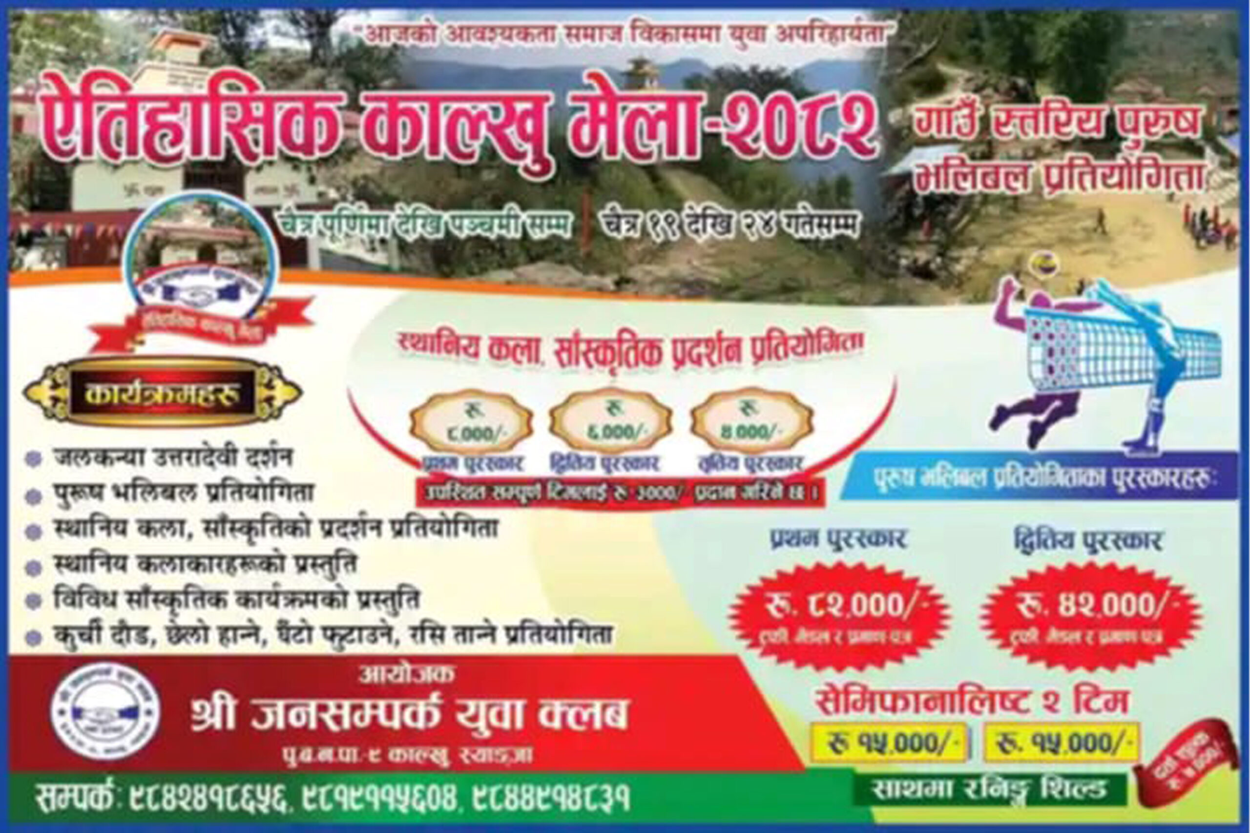पर्वत– कुश्मामा रहेको शिवालय माध्यमिक विद्यालयको ४४ औं वार्षिकोत्सव तथा अभिभावक दिवस भव्य रूपमा सम्पन्न […]